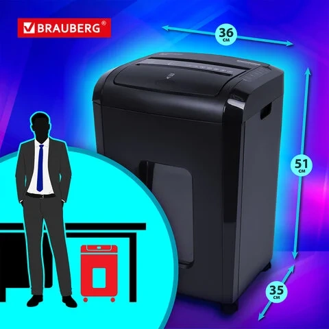 Отличительной чертой уничтожителя документов BRAUBERG является низкий уровень шума – всего до 60 Дб, то есть тише, чем звук, издаваемый электробритвой.
