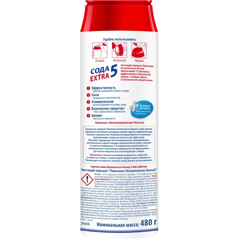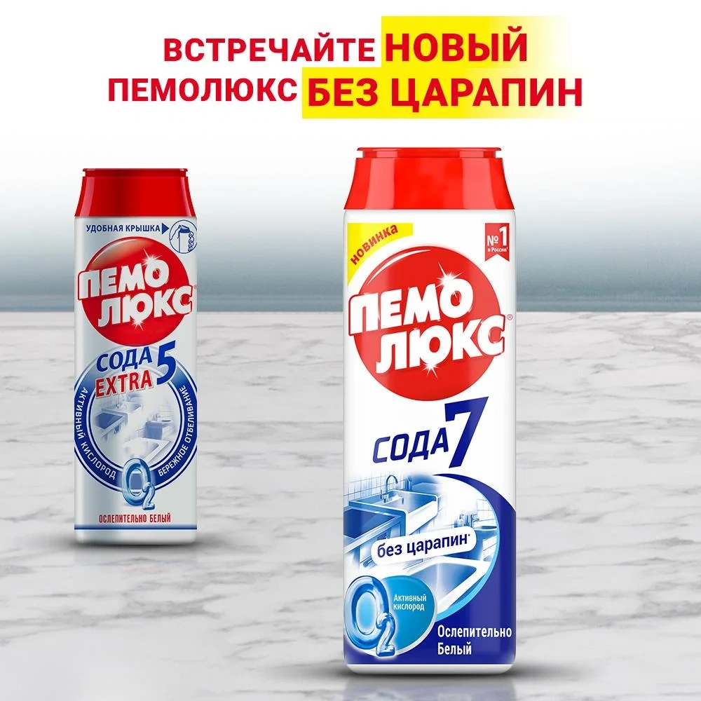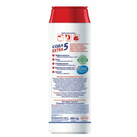 Универсальное чистящее средство Пемолюкс Сода 5 extra 480г, ослепительно белый, порошок