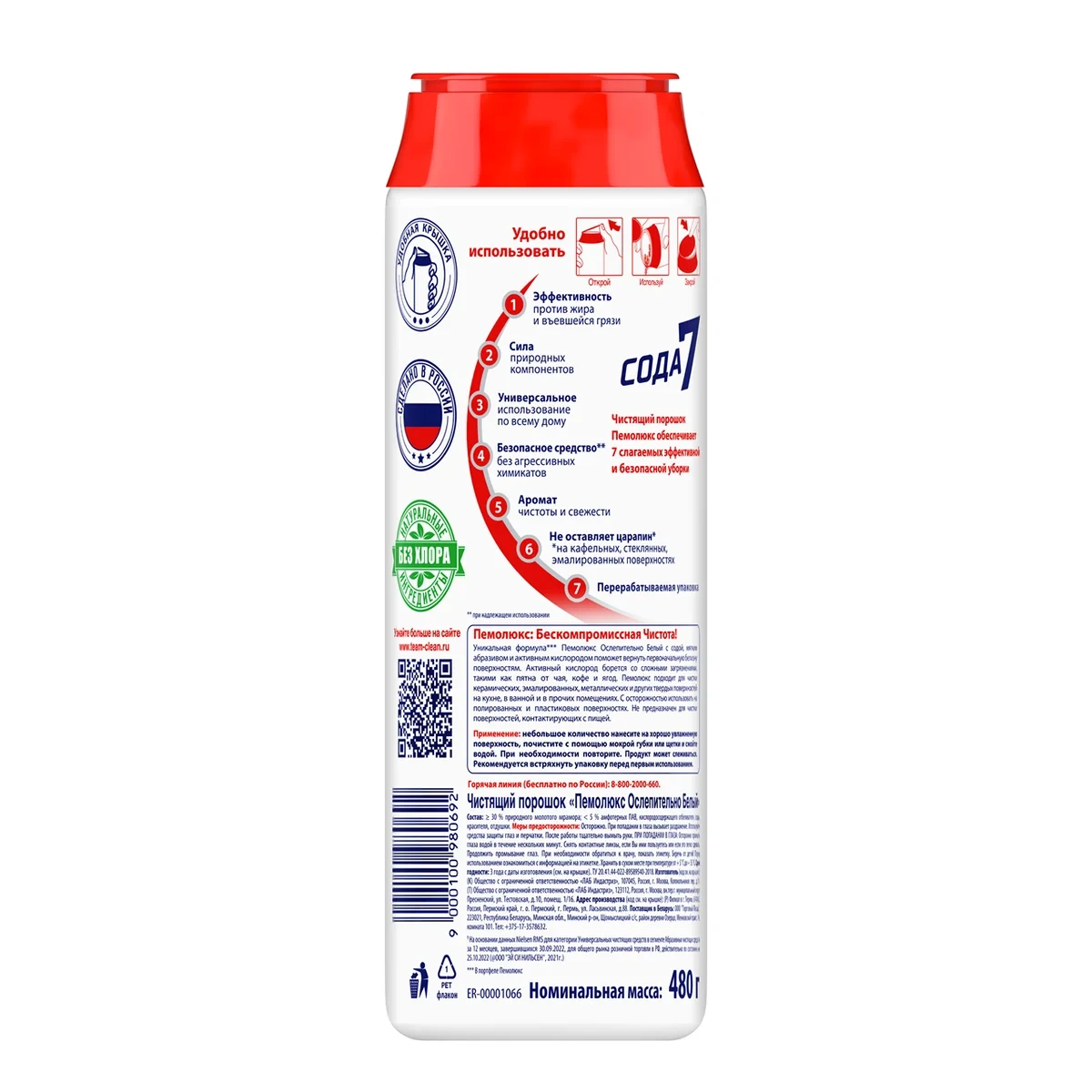 Мощная формула ПЕМОЛЮКС с содой и мягким абразивом подходит для чистки керамических, эмалированных, металлических и других твердых поверхностей на кухне, в ванной комнате и прочих помещениях. С осторожностью использовать на полированных и пластиковых поверхностях. Не предназначен для чистки поверхностей, контактирующих с пищей.