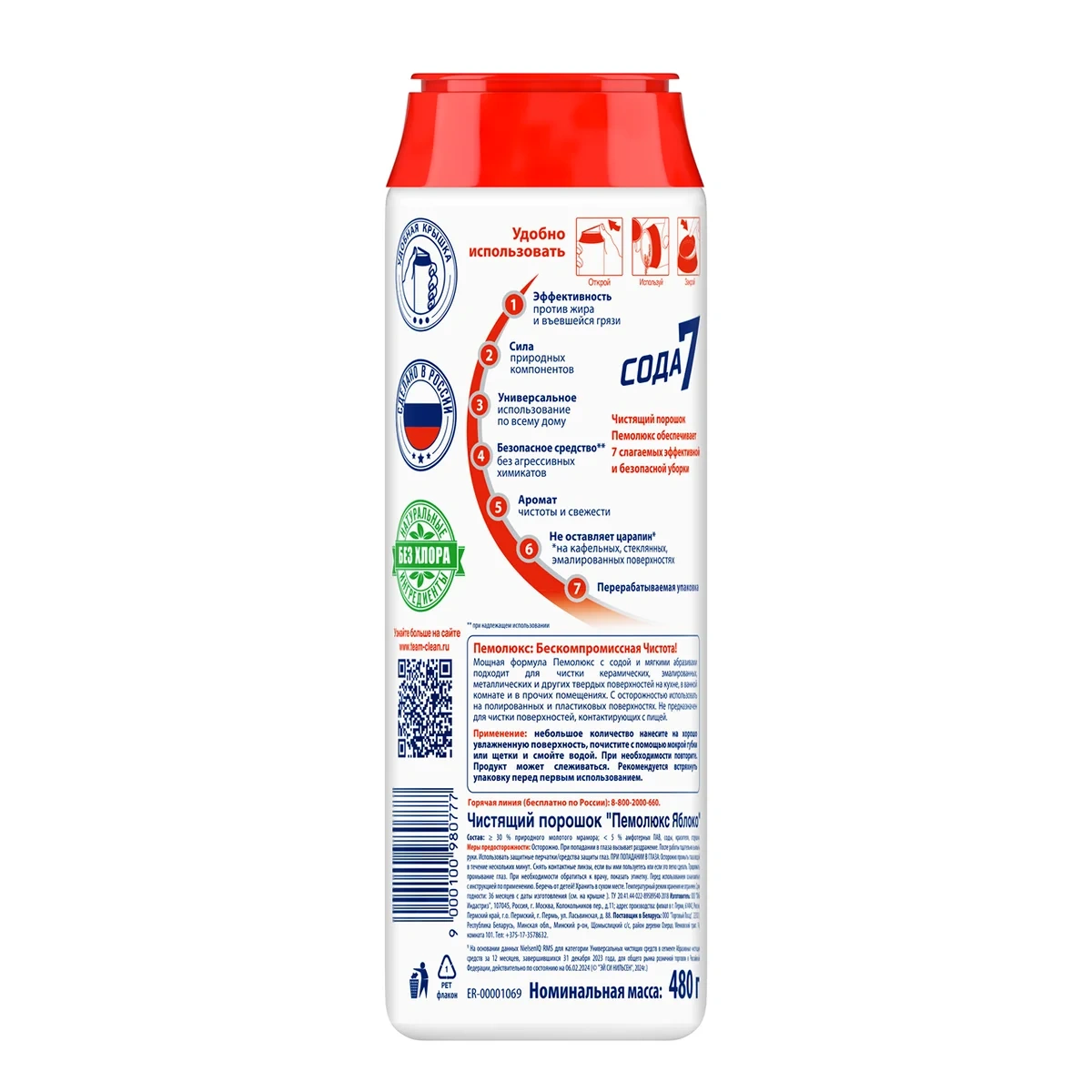 Универсальное чистящее средство Пемолюкс Сода 7 480г, яблоко, порошок