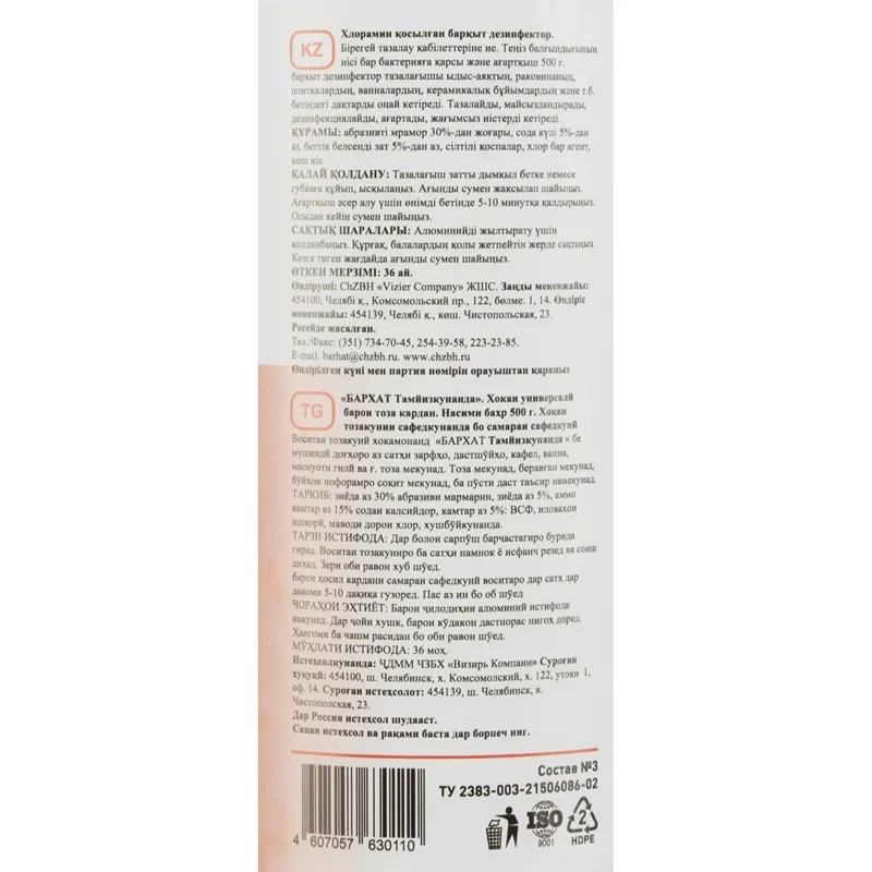Универсальное чистящее средство Бархат ДЕЗИНФЕКТОР с антиб/отбел эф 500гр