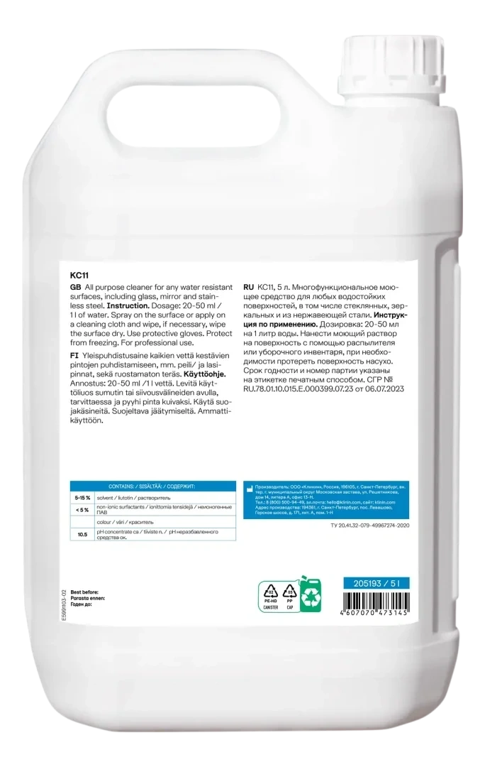 Универсальное моющее средство Klinin КС11 5л, для водостойких поверхностей, 205193