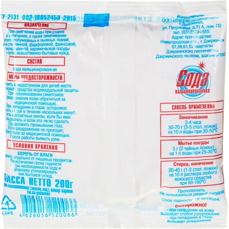 Сода кальцинированная ДБХ 0,2 кгНазначение: предназначена для смягчения воды при стирке и кипяч...