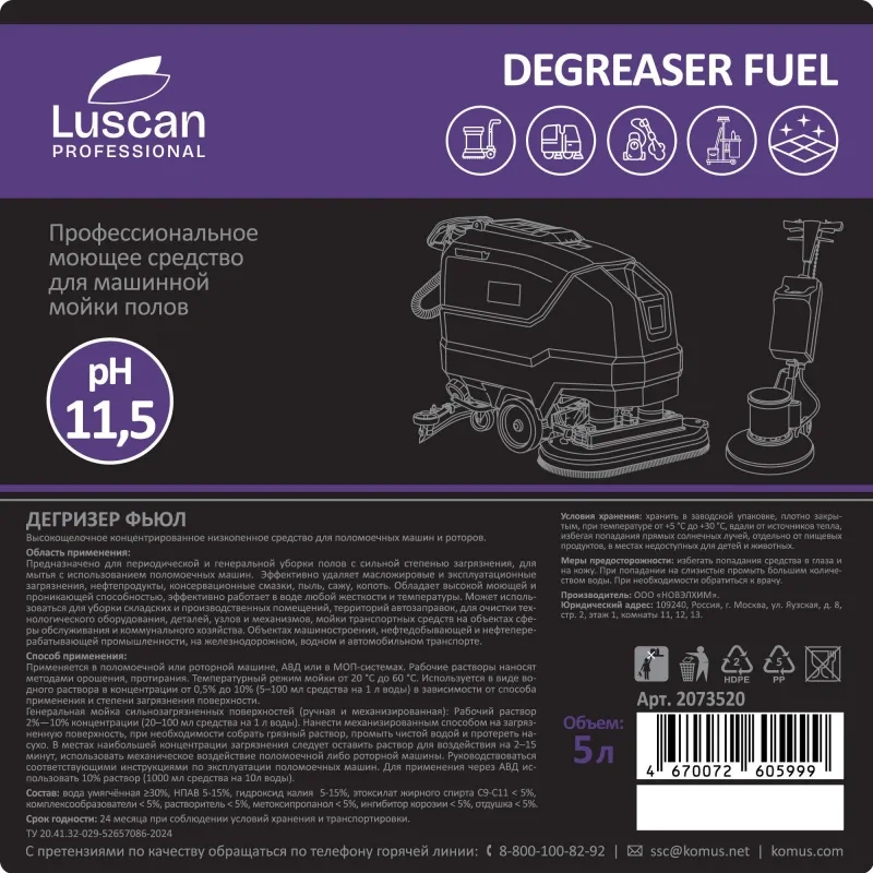 Моющее средство специальное Luscan Professional Degreaser Fuel 5л, от нефтемаслянных загрязнений