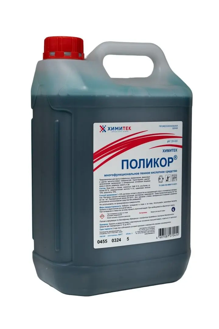 Универсальный моющий концентрат Химитек Поликор 5л, для твердых кислостойких поверхностей, 080106