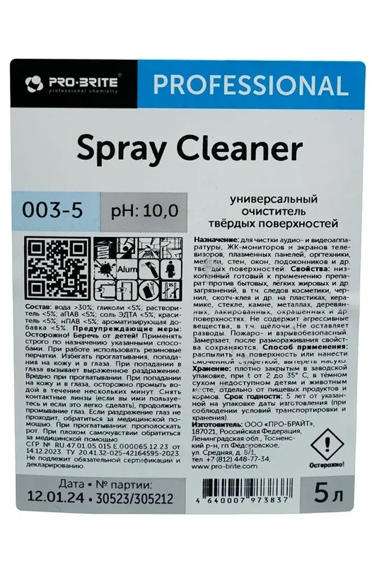 Универсальный очиститель Pro-Brite Spray Cleaner 5л, 003-5
