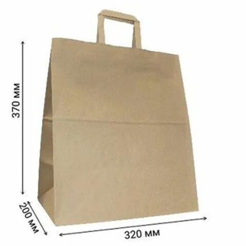 Крафт-пакет бумажный 32х20х37 см, плоские ручки, плотность 90 г/м2