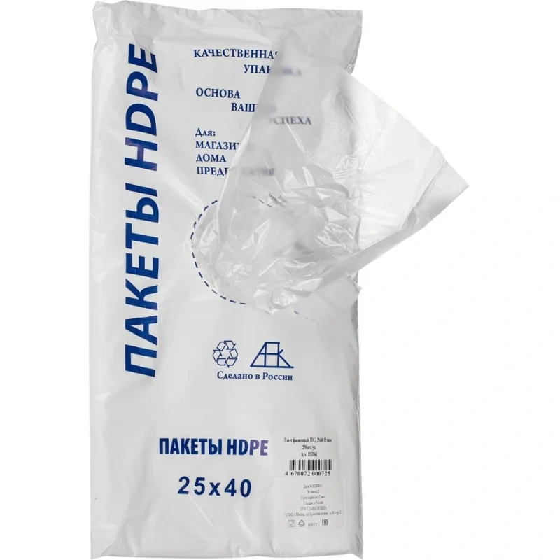 Пакет фасовочный ПНД 25x40 8 мкм. 500шт/уп