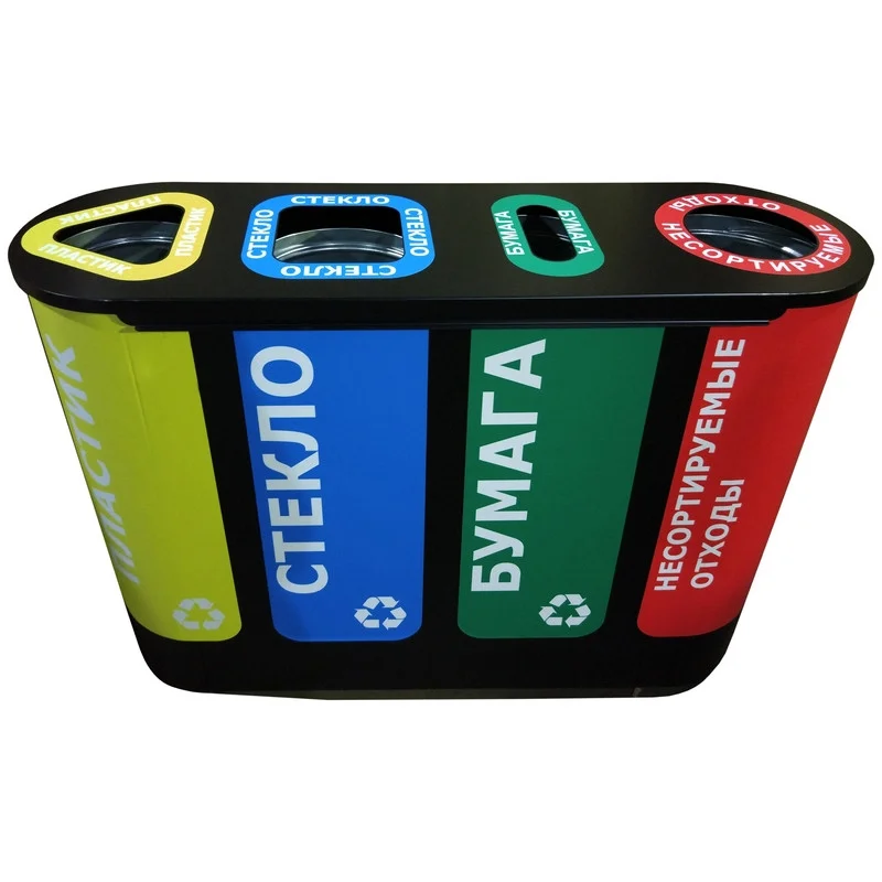 Четырехсекционная урна для раздельного сбора мусора Акцент 4 состоит из автономных внутренних емкостей цилиндрической формы. Благодаря такой конструкции содержимое разных типов не перемешивается ине нуждается в предварительной сортировке перед отправкой напереработку. Изделие выполнено изпрочной стали. Для удобства пользования урной отсеки дляразных отходов не только подписаны, но и окрашены в контрастные цвета, в крышке есть отверстия четырех форм. При значительной вместимости (192л) бак компактен. Скругленные крайние грани корпуса минимизируют риск травм при пользовании урной. Небольшие внутренние емкости легкие, их удобно вынимать дляопорожнения и чистки, можно дезинфицировать.