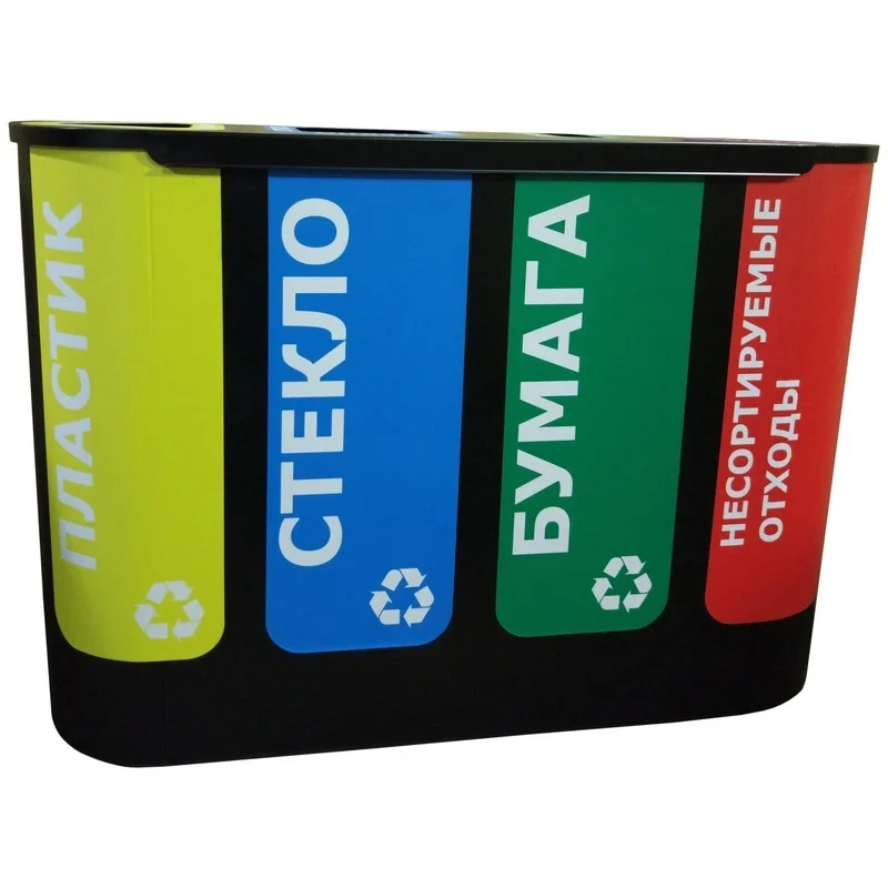 Урна для раздел сбор мусор Акцент4 черная 4-х секцион с наклейк объем4х48л