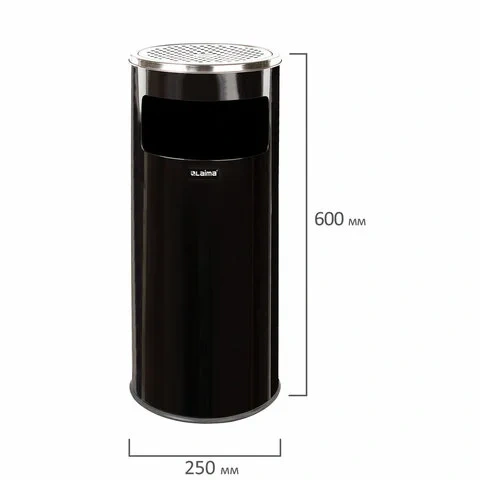 Урна с пепельницей 27 литров, 600х250 мм, нержавеющая сталь, черная, LAIMA PROFESSIONAL, 606300