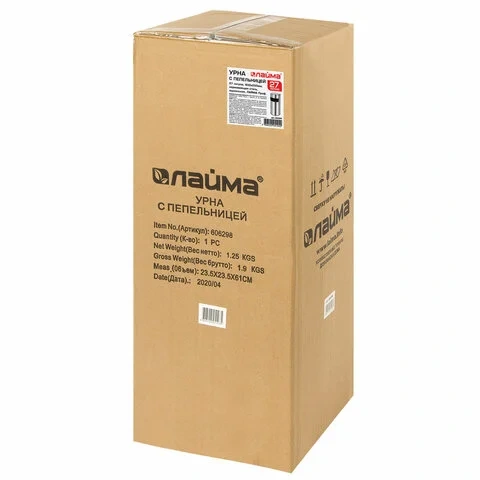 Урна с пепельницей 27 литров, 600х250 мм, нержавеющая сталь, зеркальная, LAIMA PROFESSIONAL, 606299