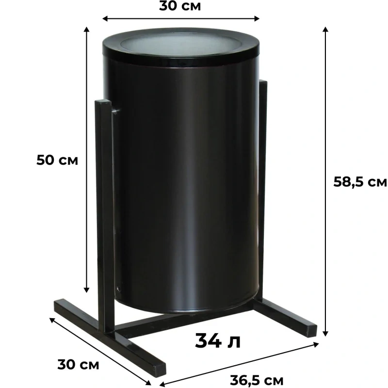 Урна уличная Титан 30л, черная, на стойке, УК1