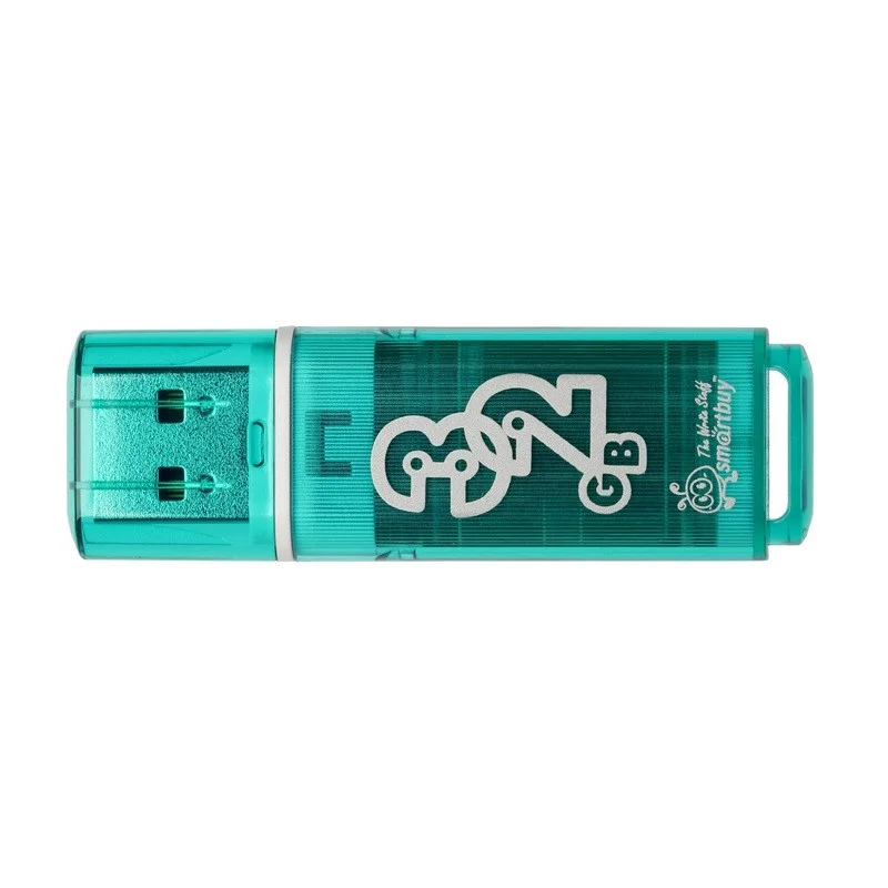Флеш-диск объемом 32 Гб комплектуется специальной системой для крепления колпачка – с помощью скобки он фиксируется между двумя выступающими пластинками на устройстве. Это очень удобно и минимизирует вероятность потери защитного колпачка. За эту же скобку флешку можно прикрепить к шнурку. Выполнен из прозрачного пластика зеленого цвета. Размер – 55х18х9 мм. Вес – 10 г.