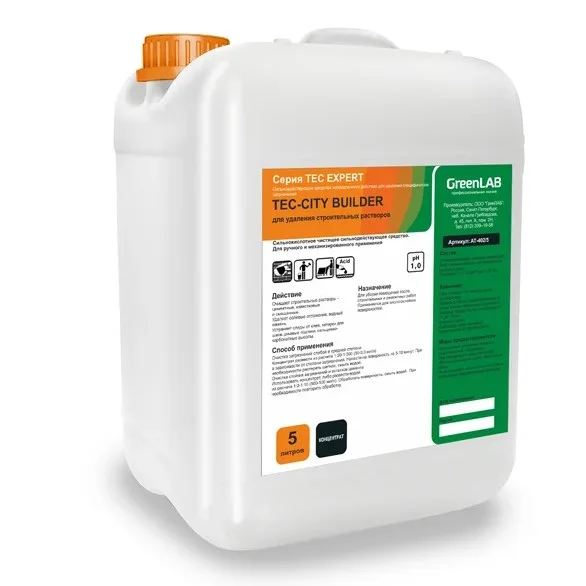 Усиленное чистящее средство Greenlab Tec-City Bulder 5л, для удаления строительных растворов, TC-232/5