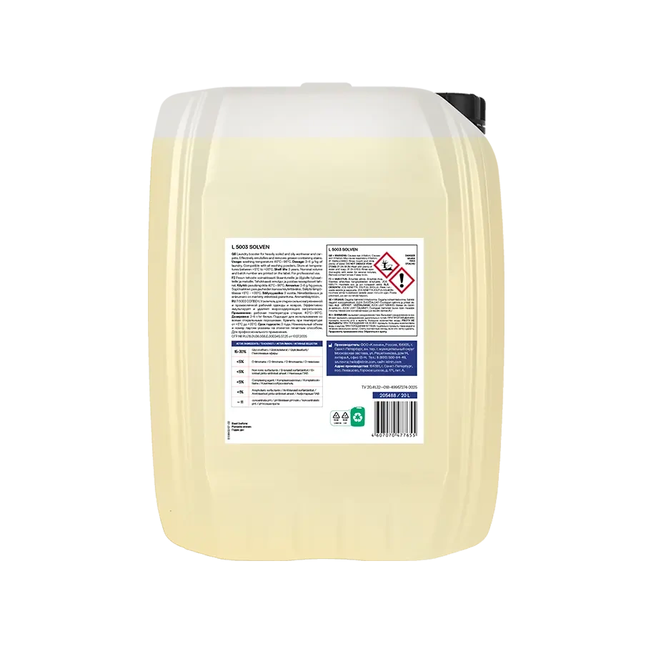 Эффективно удаляет жировые и масляные загрязнения с белых тканей, содержащих хлопок или синтетику. Средство придает белью яркость и способствует качественной очистке.
