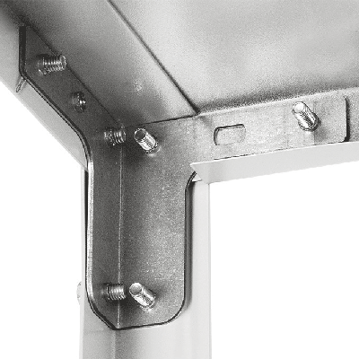 - При использовании стоек высотой более 2000 мм, не менее трех полок (нижняя, средняя, верхняя) должны быть усилены Т- образными крепежами стойки.