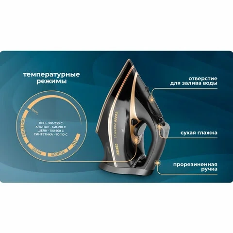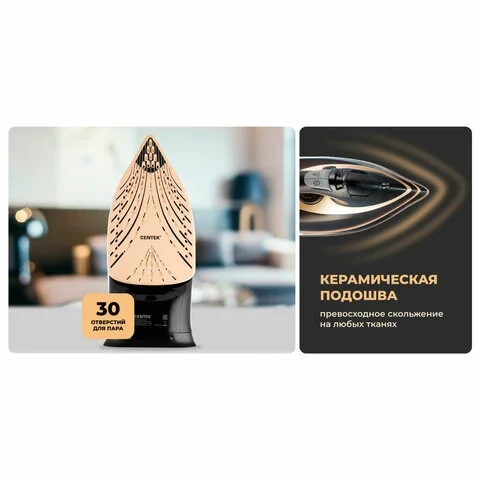 Утюг CENTEK CT-2346, 3200 Вт, керамическое покрытие, антикапля, антинакипь, черный/золотой, CT-2346