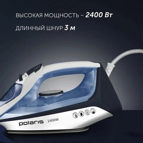 Утюг POLARIS PIR 2483K, 2400 Вт, керамическое покрытие, самоочистка, антикапля, антинакипь, синий, 5