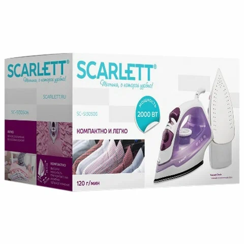 Утюг SCARLETT SC-SI30S06, 2000 Вт, антипригарное покрытие, антинакипь, самоочистка, лиловый