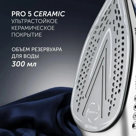 Утюг POLARIS PIR 2483K, 2400 Вт, керамическое покрытие, самоочистка, антикапля, антинакипь, синий, 5