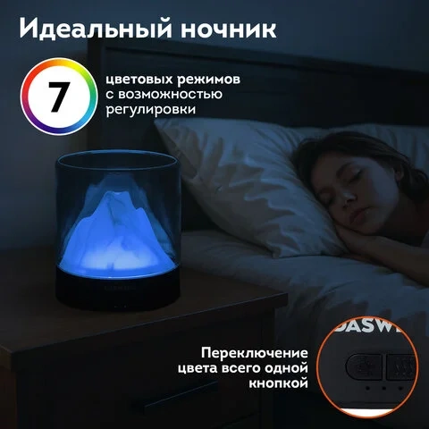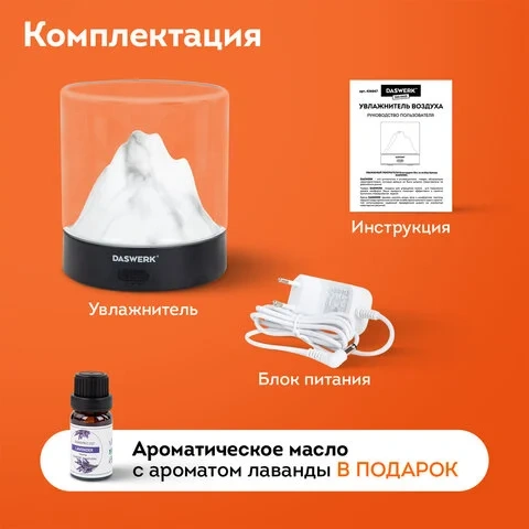 Увлажнитель воздуха аромадиффузор, подсветка и таймер, 300 мл, Аромамасло в ПОДАРОК, DASWERK, 456847