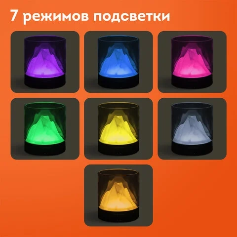 Принцип работы устройства базируется на ультразвуковом воздействии, которое превращает воду в мелкодисперсный туман. Благодаря подсветке создается эффект пламени. Подсветка имеет 7 цветов, которые можно менять, нажав на кнопку на корпусе. При добавлении эфирного масла в воду можно создать благоприятную и уютную атмосферу в доме. В комплекте уже есть ароматическое масло с запахом лаванды.