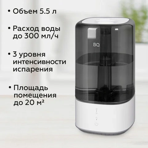Увлажнитель воздуха BQ (БИ-КЬЮ) HDR2001, объем бака 5,5 л, 25 Вт, белый/черный, 86196447