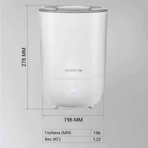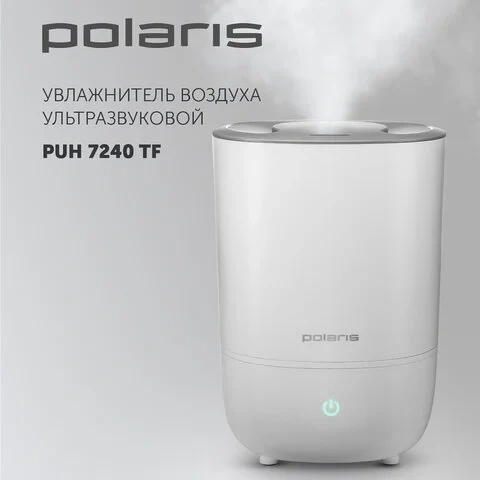 Увлажнитель Polaris PUH 7240 TF работает от сети и имеет мощность 30 Вт, что делает его экономичным в использовании.