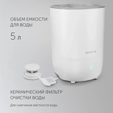 Емкость для воды имеет объем 5 литров, что позволяет использовать увлажнитель без долива воды в течение длительного времени.