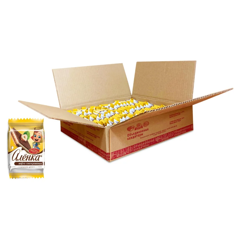 Вафли Аленка с молочной начинкой орехами и какао, 1,38кг/уп