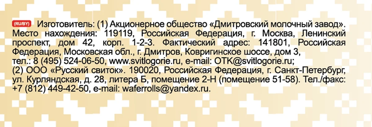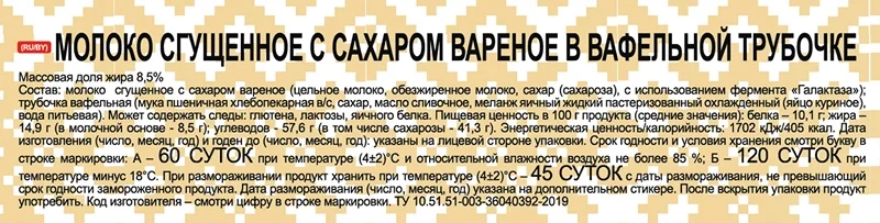 Трубочка вафельная Свитлогорье с сахаром и сгущенкой 11.7%, 65г