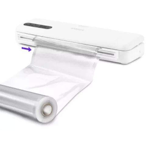 Открытый край пакета укладывается под крышку прибора, после чего вакууматор начинает выкачивать из него воздух. В результате образования вакуума пакет плотно обжимает содержимое. Как только воздух удалён, начинается запечатка открытой стороны пакета.