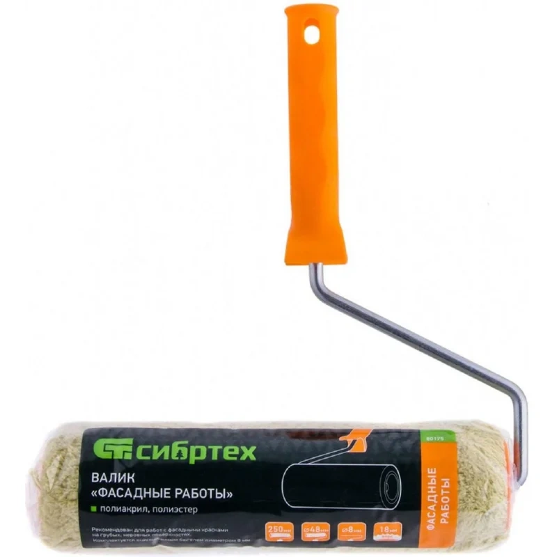 Валик «Фасадные работы», 250 мм, ворс 18 мм, полиакрил, полиэстер Сибртех. Валики группы 'Фасадные работы' рекомендованы для работ с фасадными красками и красками на водной основе на грубых, неровных поверхностях.