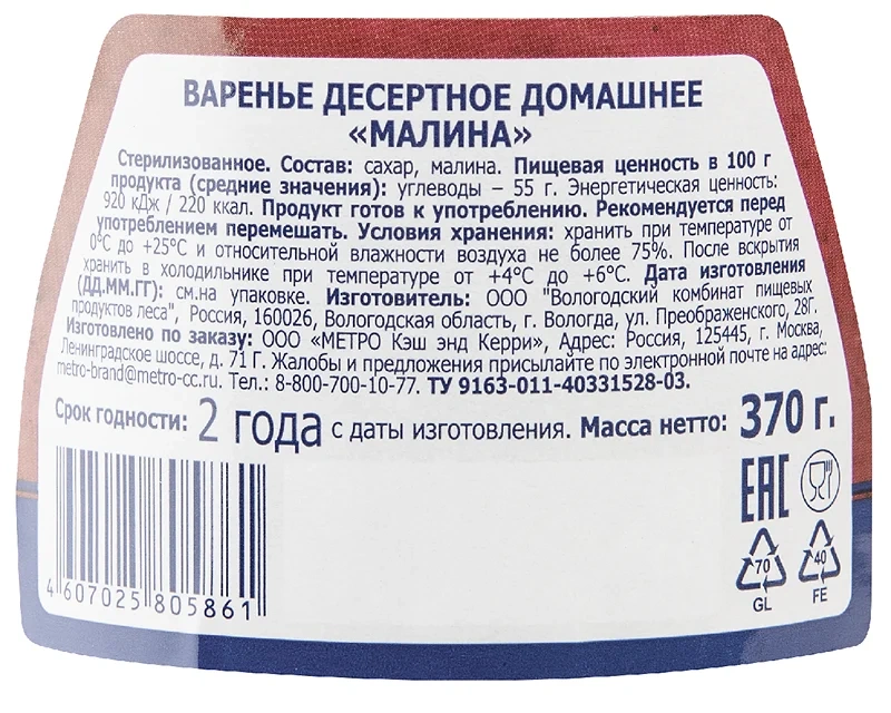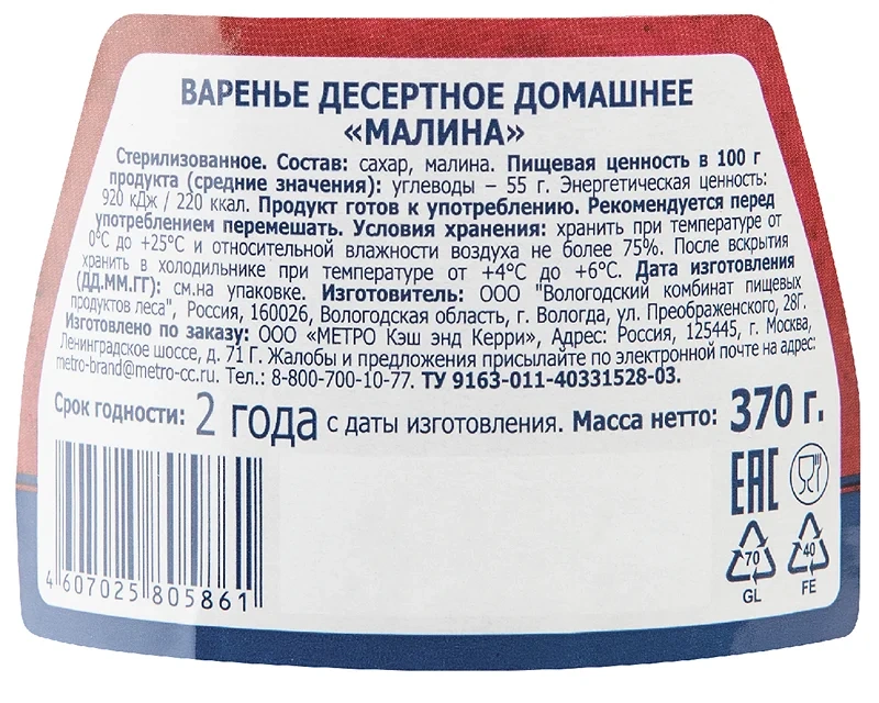 Варенье десертное домашнее Малина стерилизованное. Вкуснейшее варенье с любимым вкусом, произведенное без искусственных ароматизаторов, красителей и консервантов из целебной ягоды-малины по старинным традиционным рецептам.