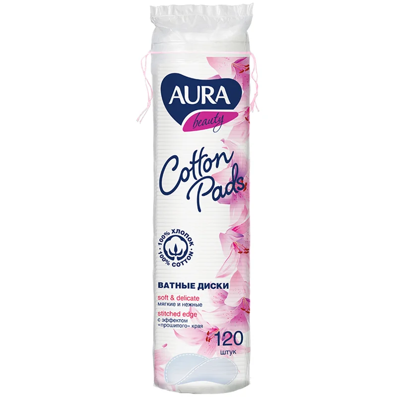 Ватные диски Aura 'Beauty', прошитые, 120шт., полиэтиленовый пакет