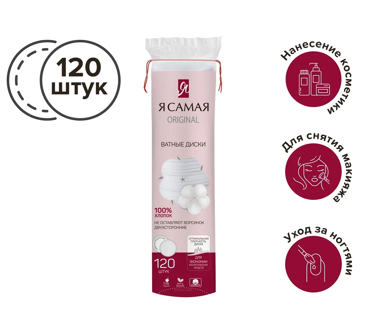 Ватные диски Мелодия двусторонние, 120шт/уп