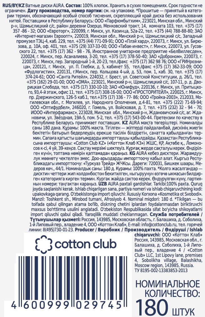 Ватные диски Aura 'Beauty', прошитые, 150шт., полиэтиленовый пакет