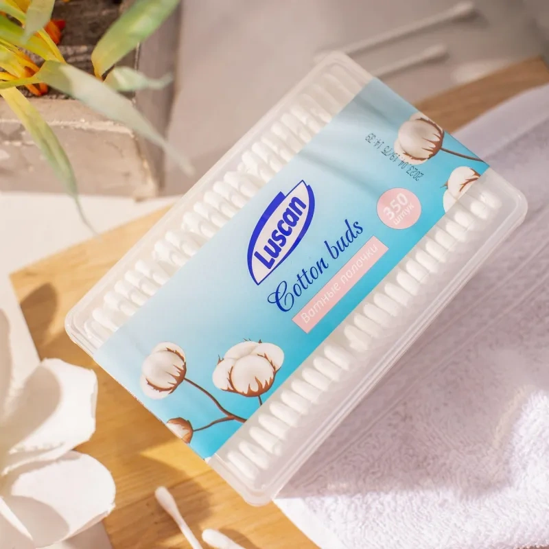 Палочки ватные Luscan пластик. моноблок 350шт/уп