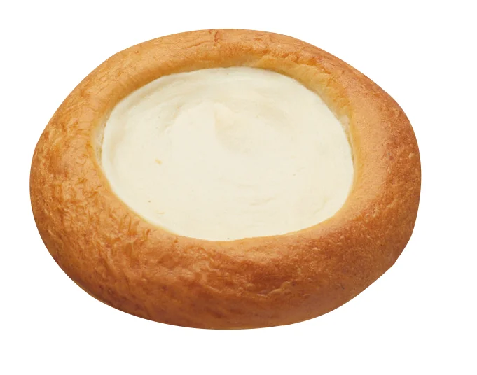 Ватрушка с нежнейшей начинкой из натурального творога с добавлением натуральной сметаны и сгущенного молока. Изготовлена из сдобного теста. Имеет вид круглой, открытой сверху и защипанной лишь с краев лепешки. Особый вкус ей придает классическая творожная начинка, которая отличается мягкой и плотной текстурой.