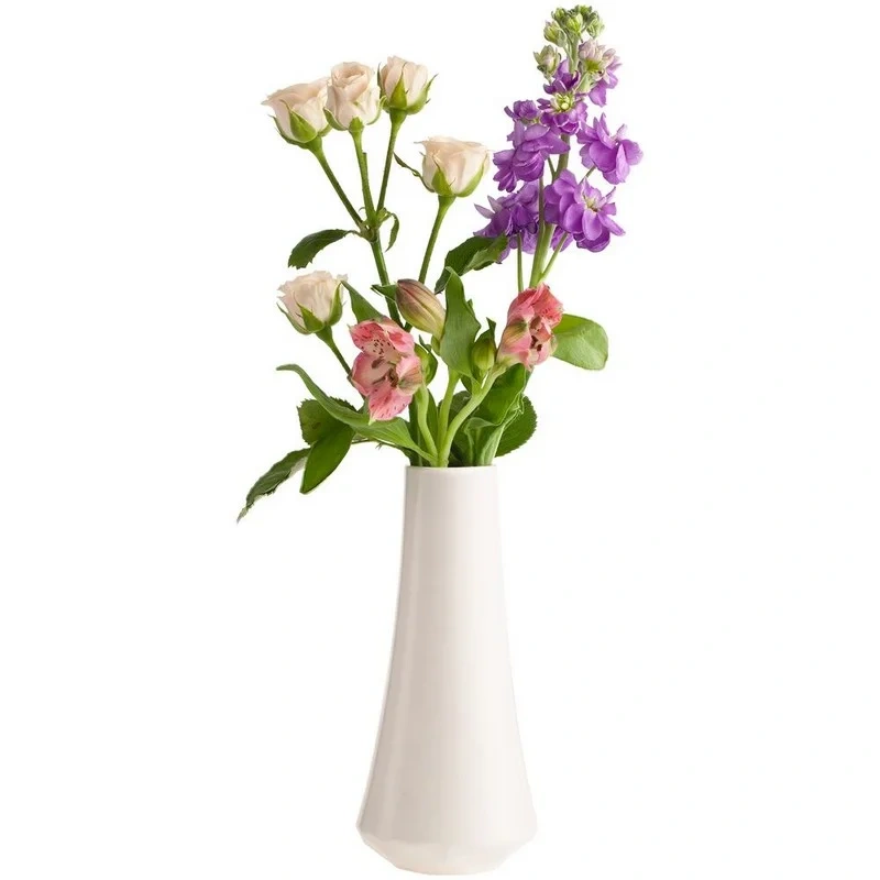 Линейка Diamante Bianco — настоящий бриллиант коллекции Altavolo. Структура и пропорции граней этой небольшой вазочки в точности повторяют верхнюю часть бриллианта классической огранки — корону. Присмотритесь — и вы увидите, как играет свет на молочно-белом фарфоре.Идеально подходит для украшения стола — или даже каждого места в рассадке — одиночным цветком и небольшим букетиком.Концепция и дизайн: Михаил Чистяков Поставляется в индивидуальной подарочной упаковке.Срок сборки набора — от 3 рабочих дней. От этой услуги можно отказаться, убрав соответствующую галочку в корзине. Материал: фарфор Размер: высота 16 см, диаметр 3,5 см