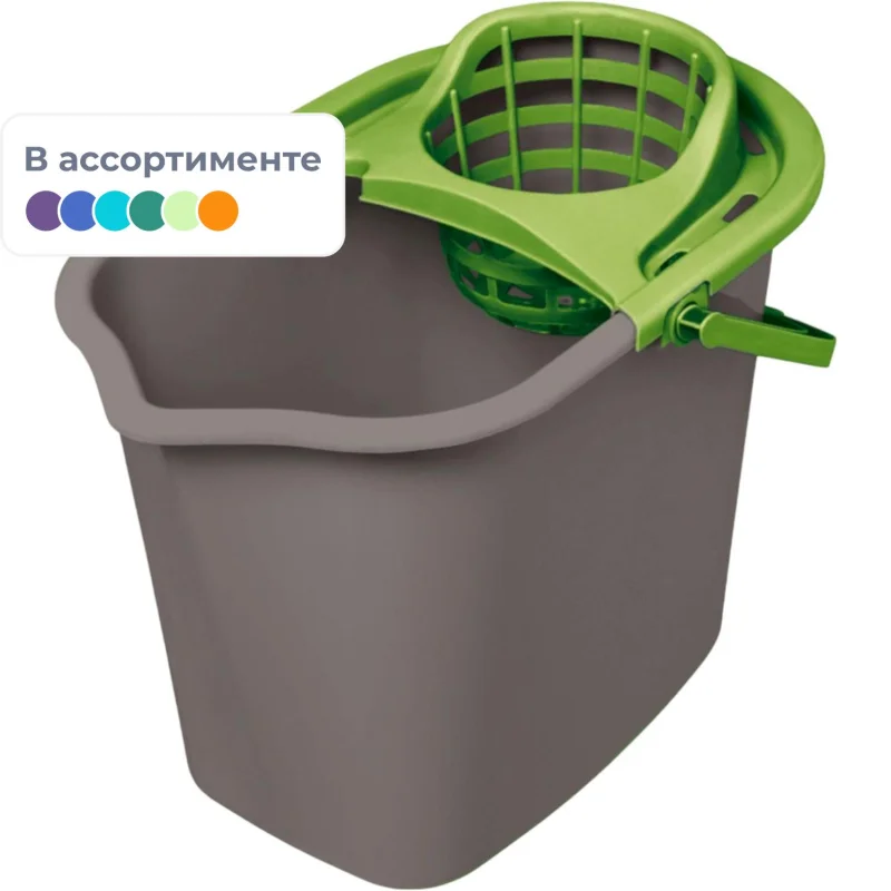 Ведро с отжимом Idea 9.5л, ярко-зеленое, прямоугольное, с отжимом