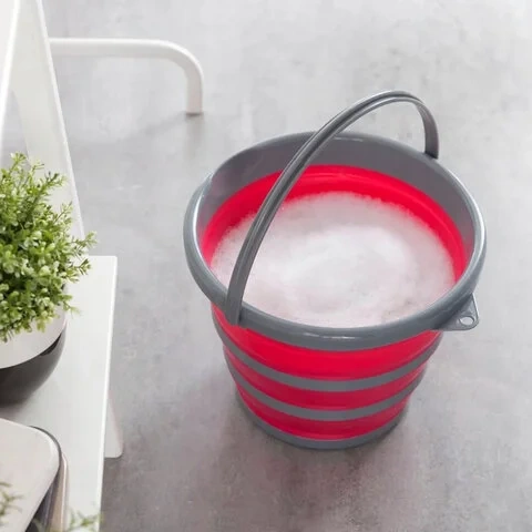 Ведро легко складывается и раскладывается, очень устойчивое. Имеет носик для удобного слива воды и отверстие для хранения в подвешенном состоянии. Может использоваться во время уборки, как емкость для хранения игрушек, грязного белья и разных хозяйственных мелочей, сбора ягод и грибов. Высота ведра в сложенном виде - 5,3 см, в разложенном - 24,5 см.
