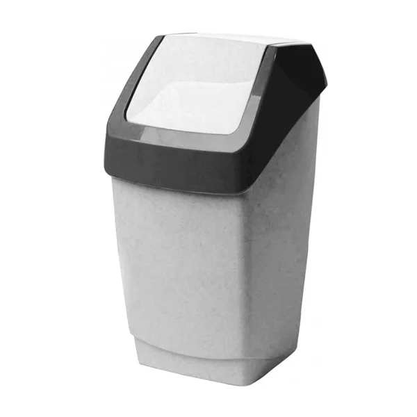 Ведро-контейнер пластиковое с плавающей крышкой. Объем: 15 л. Высота: 46 см, ширина: 26 см, глубина: 25 см. Цвет: серый. Материал: пластик.
