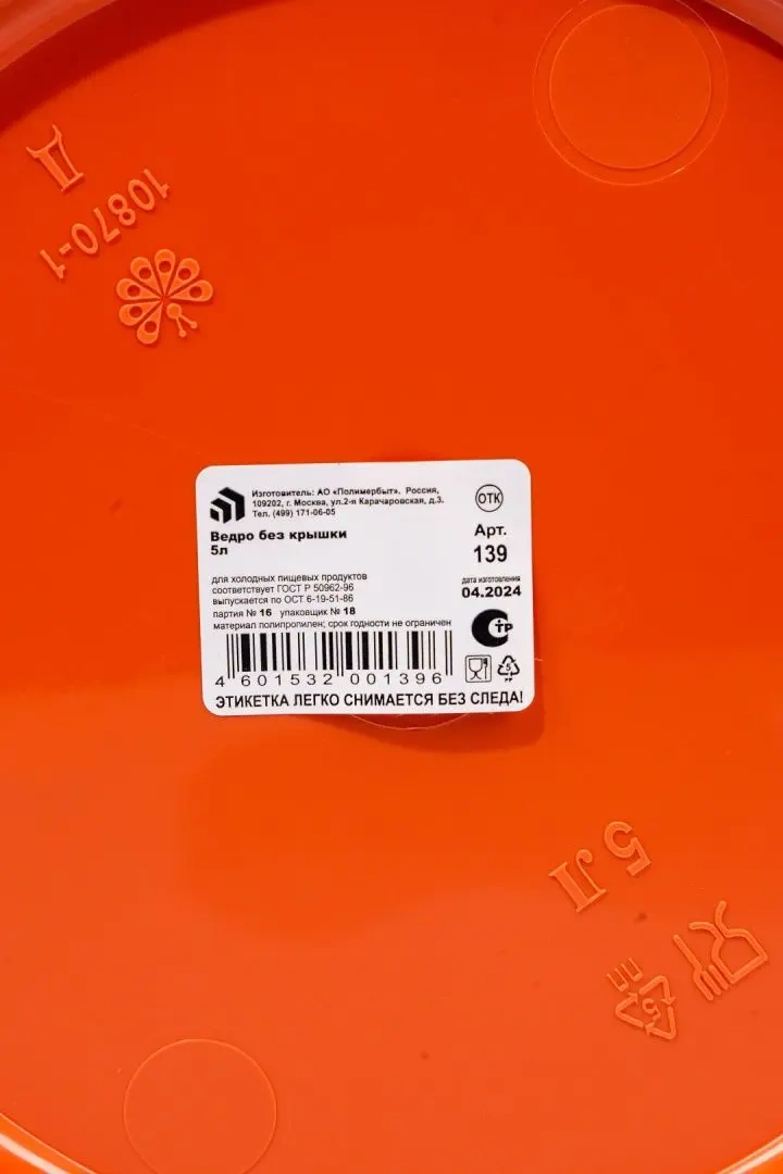 Пластмассовое ведро 5 л, цвет в ассортименте.Имеет мерную шкалу шкалу, пищевое.Разрешено для использования на пищевом произодстве.