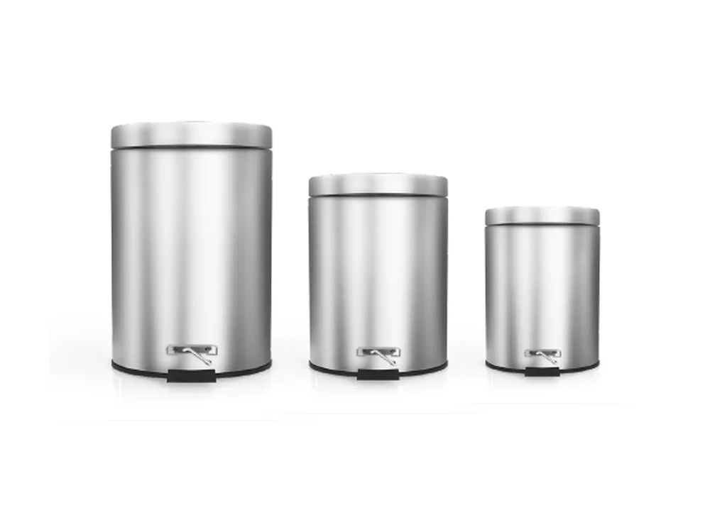 Хромированная стальная урна с крышкой, подножкой и съемным пластиковым внутренним ведром