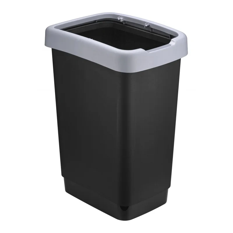 Ведро для мусора Idea Twin 25 л пластик черное/серое (47×26×33 см).