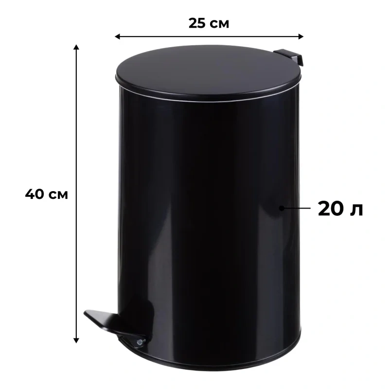 Ведро мусорное 20 л нержавеющая сталь с педалью с крышкой чёрное (40×25×25 см).