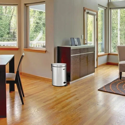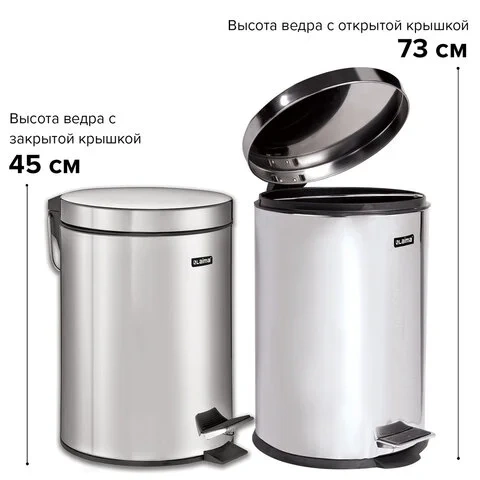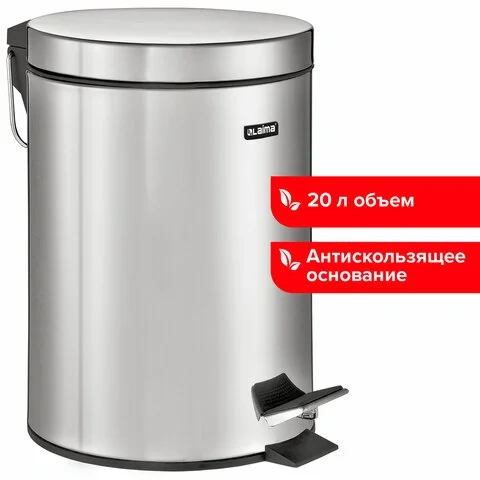 20 л - подходящий объем при большой проходимости. Оборудовано педалью для открывания. Крышка плотно прилегает, тем самым препятствуя распространению запахов. Внутреннее съемное пластиковое ведро имеет удобную рукоятку для извлечения. Изготовлено из нержавеющей стали со специальным антикоррозийным покрытием, что обеспечивает максимально долгий срок службы. Ведро устойчиво благодаря антискользящему основанию. Объем рекомендуемого мешка - 30 л. Контейнер для мусора в стальном цвете с зеркальным покрытием имеет размеры (45х29,2х29,2 см) и отлично впишется в любой интерьер.