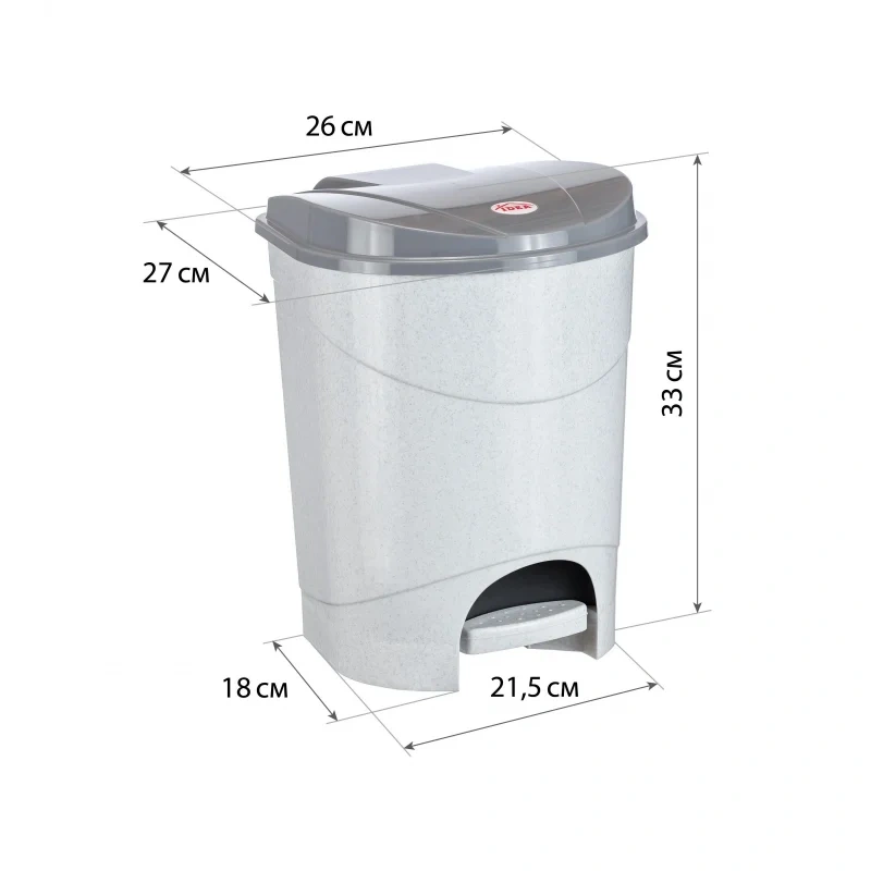 Ведро для мусора с педалью М-пластика 11 л пластик серое (33×26×26 см).